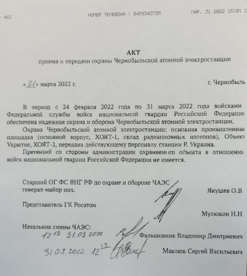 Közleményükben a kivonulás során helyiségek fosztogatásáról, valamint értéktárgyak, berendezések lopásáról számolnak be, továbbá arról értesítenek, hogy “a csernobili atomerőmű területén további intézkedésekre az ukrán szakemberek által végzett vizsgálatot követően kerül sor”.